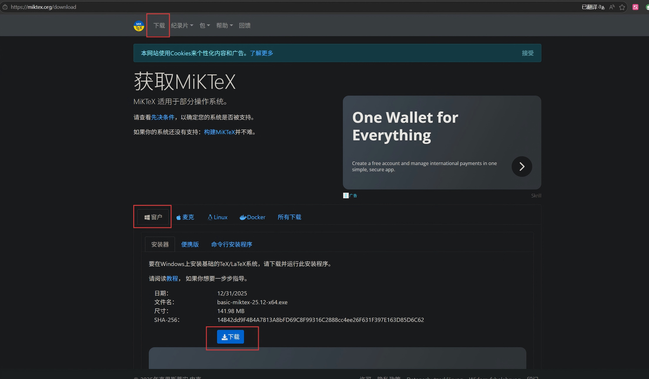 1.首先进入MikTex官网,选择自己的电脑系统,这里以Windows系统为例,点击下载: