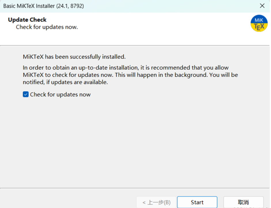 (6)勾选现在检查更新,然后点击Start: