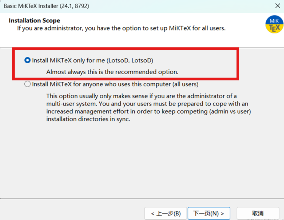 (2)选择只安装在该账户,点击下一页: